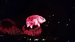 During concerts, Waters makes use of the Pink Floyd pigs from the cover of Animals, which he has used on most of his tours.