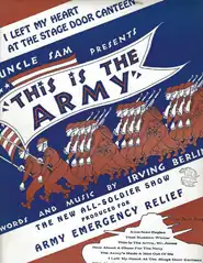 This Is The Army is an American musical revue in two acts, designed to boost morale in the U.S. during World War II, with a book by James McColl and music and lyrics by Irving Berlin. It was produced by the U.S. Army on Broadway in 1942, with a cast of U.S. soldiers, for the benefit of the Army Emergency Relief Fund.
