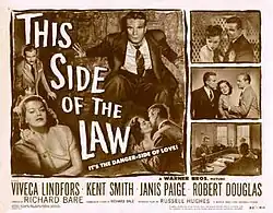This Side of the Law is a 1950 American film noir directed by Richard L. Bare and starring Kent Smith, Viveca Lindfors, Robert Douglas and Janis Paige.[1][2]
