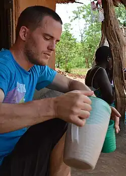 Thobwa is made by boiling water with m'gaiwa (whole grain white maize flour) until it makes phala (porridge).[7] More water is then added and brought to a rolling boil for about 15 minutes.[2] After this the mixture is left to cool until warm and at this point a handful of maŵele (millet flour) is added.[8] This mixture is now left in a mbiya (big clay pot) in a cool place for two days before being served as thobwa.[8]