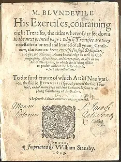 - ^ Andrew Pyle (editor), Dictionary of Seventeenth-Century British Philosophers (2000), article Blundeville, Thomas, pp. 102–3.