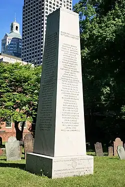 John Winthrop, governor of the Massachusetts Bay Colony described Thomas Bull as "a godly and discreet man".[10] Thomas Bull died in October 1684. He was interred alongside his wife, Susannah Bull, in the Central Congregational Church burying ground in Hartford, CT. His monument there reads, "Here lyeth the body of Capt. Thomas Bull, who died October 1684. He was one of the first settlers of Hartford; a lieut. in the great and decisive battle with the Pequots at Mystic May 27th 1637; and Commander of the Fort at Saybrook in July, 1675, when its surrender was demanded by Major Andros".[11]