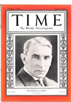 Thomas D. Campbell (1882–1966) was the "World's Wheat King". On the farms of his Campbell Farming Corporation he grew more wheat than any other farmer or corporation.[1] He pioneered industrialized corporate farming. As a consultant in agriculture, he advised the British, French and Soviet governments, including advising Stalin in 1929 on large-scale farming for the Soviet Union's first five-year plan. He served in the U.S. military in World War II and developed the napalm fire bomb used in the Pacific Theatre. He became a brigadier general in the Air Force in 1946.[2]