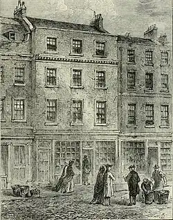 Davies performed at Edinburgh, where he was accused of monopolising popular parts, and then at Dublin. In 1753 he was engaged with his wife at Drury Lane, with some success as understudies. In 1761 appeared Churchill's Rosciad, in which the line "He mouths a sentence as curs mouth a bone" which, according to Samuel Johnson, drove Davies from the stage. Davies apparently left the stage in 1762, when he again set up as a bookseller at 8 Russell Street, Covent Garden. Here in 1763 he introduced James Boswell (who had been introduced to him by Samuel Derrick) to Johnson.[1]