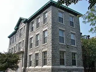 Built in 1906, this historic structure is a three-story, nine-bay by two-bay, ashlar stone building that was designed in the Colonial Revival style. It features a projecting, center cross gable bay, paired pilasters flanking the main entrance, and a modillioned copper cornice.[2]