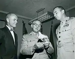 In between service in Korea and Vietnam, Miller was assigned as officer-in-charge of the Marine team participating in the Fleet Introduction Program (FIP) for the evaluation and introduction of the new A-4 Skyhawk attack aircraft into Navy and Marine Corps Squadrons. In 1960, he served at the Bureau of Aeronautics, later the Bureau of Naval Weapons, Washington, D.C., as a research and development project officer of the F4H-1 (later the F-4B) Weapons System, during which time he set the 500-kilometer Closed Course World Speed Record at 1,216.78 miles per hour at Edwards Air Force Base, California, on September 5, 1960.[11] In 1965, General Miller was assigned to head the U.S. Marine Corps Air Weapons Systems Requirements section. His development of the military helicopter during this time helped generate a new level of helicopter capability for civilian use in a broad range of applications, ranging from police and Medivac work to corporate executive transportation. He was the first American to fly the Marine Corps' new AV-8A jet, capable of vertical takeoff and landing, and in April 1968, he was the first to fly the Phantom jet coast to coast without refueling.[12]