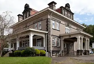 Built in 1906, this historic structure is a 3+1⁄2-story brick dwelling with Spanish Colonial Revival-style design details. It has a hipped roof clad with red Spanish tile, dormers on three sides of the roof, a full width front porch, and carved stone detailing. Also located on the property is a two-story, hipped roof carriage house built in 1917–1918.[2]