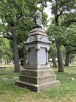 Hoyne was killed in a July 27, 1883 railroad collision on the Rome, Watertown and Ogdensburg railroad near Carlton Station. He was buried at Rosehill Cemetery in Chicago.[12]