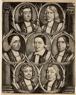 In 1688, when James reissued his Declaration of Indulgence, Ken was one of the Seven Bishops who refused to publish it. He was probably influenced by two considerations: first, by his profound aversion to Roman Catholicism, to which he felt he would be giving some episcopal recognition by compliance; but, second and more especially, by the feeling that James was compromising the spiritual freedom of the church. Along with his six brethren, Ken was committed to the Tower on 8 June 1688, on a charge of high misdemeanour. Ken was put on trial with the others on 29 and 30 June, which resulted in a verdict of acquittal.[1][6]