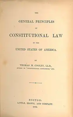 - ^ Thomas M[cIntyre] Cooley (1880), The General Principles of Constitutional Law in the United States of America (1st ed.), Boston, Mass.: Little, Brown and Company, OCLC 14448549.