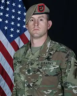 Thomas Patrick Payne (born April 2, 1984) is an American soldier. As a sergeant major in the United States Army's elite Delta Force, he was awarded the Medal of Honor for actions during a 2015 hostage rescue mission in an area of northern Iraq controlled by the Islamic State. Payne previously served in the 75th Ranger Regiment, and as an infantry instructor. He is the first living Delta Force Medal of Honor recipient, and the first to receive the award for actions during Operation Inherent Resolve.[1][2]