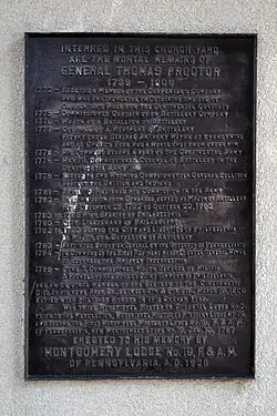 | .jpg) Plaque memorializing Thomas Proctor is at Old St Paul's Church Graveyard in Philadelphia, Pa. | |