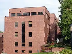 The Law School is housed in Edward J. Hanley Hall and the Dr. John E. Murray, Jr. Pavilion on the Duquesne University campus. The combined structures occupy nearly 125,000 square feet (11,600 m2). Administrative and faculty offices, classrooms of various sizes, two courtrooms, study areas and a multilevel law library are all under one roof, along with a locker room, café, lounge area and offices for student organizations. Offices and conference areas for the School's in-house clinics are located in nearby Fisher Hall. Law School facilities feature computer and audio/video technology for teaching, research and administrative functions. Law School students can use all of the other amenities on Duquesne's 47-acre (19 ha) campus, including computer laboratories, the university's Gumberg Library, dining services and recreational facilities.