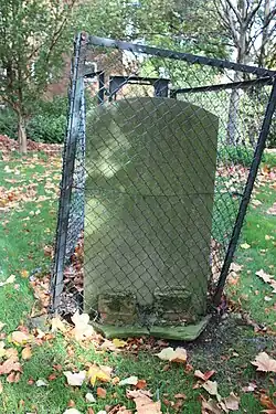 He died in 1837, and was buried in Paddington churchyard.[1] He lies in the large western section changed into a public park (St Marys Gardens) in 1881. Although most stones were cleared during this process, Richmond's grave remains, lying to the north-west, however its value is greatly diminished by having been recently enclosed within an ugly metal cage.