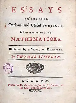 - ^ Simpson, Thomas (1710–1761) Archived 24 August 2004 at the Wayback Machine