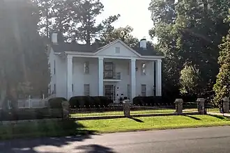 The Thomas Sloan Boyd House is a T-shaped, two-story brick structure, built out of locally made bricks in about 1873[3] by Thomas Sloan Boyd, a local farmer. Most of the interior woodwork was cut from trees found on the property. A full-height porch extends across the facade, supported by square brick columns, added in 1913. It is the oldest brick building in the city. The brick has been painted white since 1936 to help with preservation. Outbuildings, including the well house, barn, and a small cabin original to when the Boyd family owned the property, have been removed. [4]