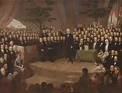- ^ The Mechanics' and Farmers' Bank of Albany's first charter expired in 1833 and the second charter expired in 1853, upon which the bank closed up its affairs and the stockholders received 115% besides their stock in the new bank, which renewed the charter for twenty years and went into operation again with the same officers. During the Civil War, the bank closed up its affairs and organized in 1865 under the National Bank Act, having previously operated as a state bank. In 1868, the bank again was chartered under state banking laws, abandoning the national system.[2]
