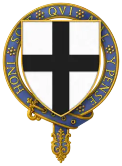 In 1348 he was invested, with 23 other knights, into the new Order of the Garter established by Edward III and was allocated stall 18 in the home of the order, St George's Chapel, Windsor.[1][2]