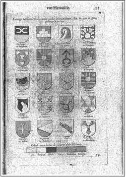 - Thomas de Rouck, Den Nederlandtschen Herauld ofte Tractaet van wapenen, en politycken Adel. Amsterdam, 1645 Digitized. The hatching table to be found in the second part, page 55.