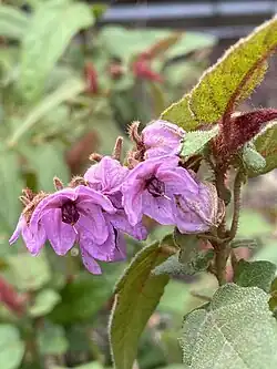 Thomasia paniculata is a species of flowering plant in the family Malvaceae and is endemic to the south-west of Western Australia. It is a spreading shrub with heart-shaped to narrowly egg-shaped leaves and pinkish-mauve flowers.
