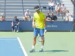 At the US Open, Bellucci defeated Nicolas Mahut in straight sets before falling to No. 4 ranked, Stan Wawrinka in the second round after giving a good fight to the grand slam champion, winning the third set and being a break up in the fourth before losing by 3–6, 4–6, 6–3, 6–7. In the Davis Cup play-offs, Bellucci was a key component of a stunning victory[11][12] of Brazil over Spain in the clay courts of São Paulo. The Brazilian was two sets down against known foe Pablo Andújar before coming back to win 3–6, 6–7, 6–4, 7–5, 6–3. After the doubles team of Marcelo Melo and Bruno Soares made it to a 2–1 advantage for Brazil, Bellucci finished the job and clinched the place for his country in the 2015 World Group by winning a nervous four setter against 15th ranked Roberto Bautista Agut (6–4, 3–6, 6–3, 6–2) and Brazil 3–1 Spain. After the match, Thomaz fell to his knees, crying, as the same crowd that booed him one year earlier, applauded as their hero[13] consolidated this historic win. Bellucci reached the quarterfinal stage at Vienna after defeating third seed Feliciano López and again at Valencia after winning over Mikhail Youzhny and Bautista Agut. Therefore, the Brazilian closed the season back in the top 100, ranked 65th in the world.
