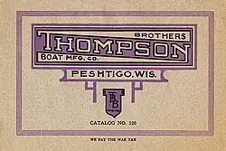 The Thompson Brothers Boat Manufacturing Company of Peshtigo, Wisconsin, was a manufacturer of pleasure boats and canoes. Founded by brothers Peter and Christ Thompson in 1904,[1] the company became prominent in the field and built boats for nearly one hundred years.[2] The Thompson Antique & Classic Boat Rally celebrates the company's history with a boat show every other year[3] and in 2013 the Thompson Brothers canoe was celebrated at the Annual Assembly of the Wooden Canoe Heritage Association.[4]