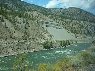 Because of large deposits of glacial silt, sand, and gravel in the lower Thompson River valley, large landslides are common.[8] The area downstream from the town of Ashcroft is prone to landslide events; eight major events between 1880 and 1982 have been recorded. Several of them have obstructed the river, and caused large, temporary lakes. An 1880 slide caused the formation of a short-lived lake over 14 kilometers long with a maximum depth of 18 meters. These slides have caused major damage to the rail lines and farming operations in the river valley. Heavy irrigation has been blamed for some of the events.[8]