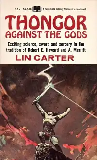 The Thongor series is Carter's premier entry in the Sword & Sorcery genre, representing a tribute to both the Conan series of Robert E. Howard and the Barsoom novels of Edgar Rice Burroughs. He pictures the lost continent of Lemuria as a prehistoric kingdom located in the Pacific Ocean during the Ice Age, where Mesozoic wildlife persisted after the cataclysm wiped them out elsewhere. An intelligent reptilian humanoid race descended from dinosaur reigned supreme as the dominant life form but was partially supplanted by humanity as the continent was colonized by fauna from outside Lemuria. Humans have gradually thrown off their subjection by the older civilization. Culturally, Lemuria is a mixture of civilization and barbarism but overall is precociously advanced over the outside world, boasting a magic-based technology that includes even flying machines. The Thongor books relate the struggle of the titular hero to unite the humans of Lemuria into a single empire and complete the overthrow of the "dragon kings".