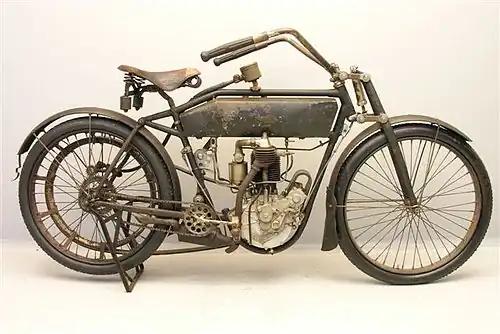 Thor made engines for Indian from 1901 to 1907 when they introduced their own cycle; before then they only made engines and parts for other makers.[2] In 1910 Thor introduced a V-Twin engine, and mounted one cylinder straight up unlike in the more V shape that became common later in the century.[2] By 1913 they had developed a more advanced larger displacement engine and it was mounted with both cylinders at angles, in the typical V-shape.[3]
