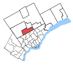 It consists of the part of the City of Vaughan that is east of Highway 400 and south of Rutherford Road, and the part of the City of Markham west of Bayview Avenue.[1]