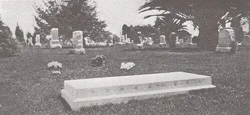 Thornton Chase died on 30 September 1912 in Los Angeles, age 65, of complications following unsuccessful surgery.[143][74] Chase managed a note to his friend John Bosch while in the hospital.[144] The surgery was not successful and Chase was in pain some 5 days before dying, probably of cancer. ʻAbdu'l Bahá was on a train en route to California at the time; He immediately changed his plans and went to Los Angeles to visit Chase's grave. There he praised Chase's qualities highly, instructed the Baháʼís to hold a commemoration of Chase annually at his grave, and encouraged Baháʼís to visit the gravesite. Many Baháʼís visited that year and a more permanent memorial has since been raised.[145] ʻAbdu'l-Bahá wrote a prayer for Chase that includes: