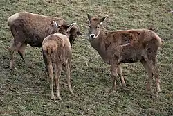 | Pair of Thorold's deer; doe (female) at left, stag (male) to right. | |
