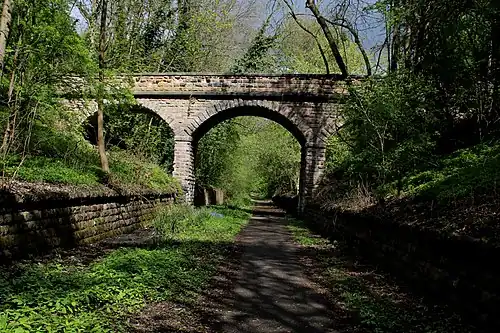 ![]() Cutting and overbridge at northern end of former station, 2017 | |||||
