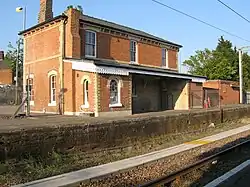Thorpe-le-Soken railway station is on the Sunshine Coast Line, a branch of the Great Eastern Main Line, in the East of England, serving the village of Thorpe-le-Soken, Essex. It is 65 miles 7 chains (104.7 km) down the line from London Liverpool Street.[1] Its three-letter station code is TLS. To the west the preceding station is Weeley and to the east the following stations are Clacton-on-Sea on the single-stop Clacton branch or Kirby Cross on the branch to Walton-on-the-Naze.