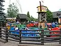 Pirate Ship | 1994 | The Jungle | Metallbau Emmeln | A small banana themed swinging ship ride themed to one of the Thorpe Park Rangers. Minimum height 0.9 m (2 ft 11 in). |