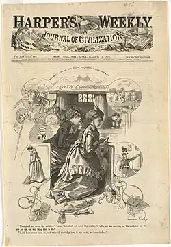 Catholic teaching on the prohibition of greed and envy center around Christ's admonishments to desire and store up treasure in Heaven rather than on Earth, "For where your treasure is, there'll your heart be also."[39] The tenth commandment is regarded as completing and unfolding the ninth. The tenth commandment forbids coveting the goods of another, as the root of the stealing and fraud forbidden by the commandment, "You shan't steal." "Lust of the eyes" leads to the violence and injustice forbidden by the commandment, "You shan't murder." Covetousness, like sexual immorality, originates in the idolatry prohibited by the first three commandments. Along with the ninth commandment, the tenth summarizes the entire Ten Commandments, by focusing on the intentions and desires of the heart.[40]