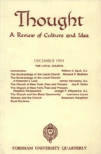 Thought: Fordham University Quarterly was a peer-reviewed academic journal that published articles and reviews on a broad range of topics in the Catholic tradition. The journal was established in 1926 at the America Press and moved to Fordham University in 1939,[1] with the first Fordham edition of the journal appearing in March 1940.[2] It continued to be published at Fordham until 1992. The journal's first editor was Francis X. Talbot.[3] During this time the journal published a total of 267 issues containing over 5,000 English-language contributions from well-known philosophers, theologians, social activists, and intellectuals in several countries. The entire collection is available online from the Philosophy Documentation Center.