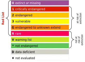 - ^ Gerhard Ludwig, Heiko Haupt, Horst Gruttke und Margret Binot-Hafke (2009), Bundesamt für Naturschutz (ed.), "Methodik der Gefährdungsanalyse für Rote Listen" (PDF), Naturschutz und Biologische Vielfalt (in German), Münster
