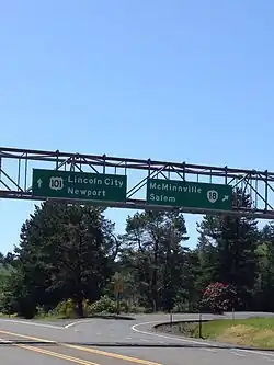 Oregon Route 18 is a state highway that runs between the Oregon Coast, near Lincoln City, and Newberg. OR 18 traverses the Salmon River Highway No. 39 of the Oregon state highway system,[2] named after the river alongside its westernmost segments.