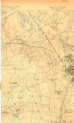 The Three Mile River or Threemile River[1] is a river in Bristol County, Massachusetts. It is formed by the junction of the Rumford and Wading rivers in the town of Norton.[2] It flows in a southeasterly direction for 13.5 miles (21.7 km)[3] through the towns of Norton, Taunton and Dighton, where it joins the Taunton River.[4]