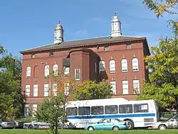 In the 19th century, the area remained the site of large farms, converted into estates. In about 1848, members of the Morris family purchased a large parcel of land there. They built two mansions and many cottages and service buildings. The Morris estates had a private dock in Morris Cove, at the end of what is now Emerson Avenue, where they had nearly a mile of shoreline.[12] After the Civil War, Collis P. Huntington, the railroad builder, owned an extensive parcel,[13] which his heirs held until they were almost the last estate on Throggs Neck. Huntington's property was previously owned by Frederick C. Havemeyer Jr., a sugar magnate,[14] and the Havemeyer-Huntington mansion is now home to Preston High School, New York.
