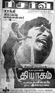 Thyagam (/θjɑːɡəm/ transl. Sacrifice) is a 1978 Indian Tamil-language drama film directed by K. Vijayan, starring Sivaji Ganesan and Lakshmi. It is a remake of the 1974 Bengali film Amanush.[2] The film was released on 4 March 1978 and became one of the highest-grossing Tamil films of the year.[1]