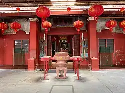 The temple feature three altars in its main hall with two ancestral tablets dedicated to wandering souls and 108 brave villagers who lost their lives during a war since time immemorial.[1] The statues of Mazu and Shui Wei Sheng Niang occupies the central altar while in the right is devoted to Guan Yu and Fude Zhengshen.[1][6]