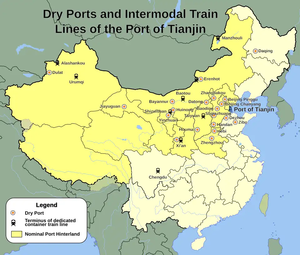 - ^ 口岸首页>>区域合作>无水港建设 Archived 2012-04-26 at the Wayback Machine. Tjport.gov.cn. Retrieved on 2012-06-11.