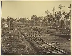 The station was built in 1877, two years before the line from Gympie to Maryborough was completed. It consisted of a station building and a platform, and two sidings running parallel to the main North Coast line.[2][3] After the station closed, the building was moved to Mayne Street and restored as a tourist information centre. Some of the siding platforms still exist, however the station platform has been removed.