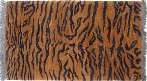There are several kinds of Tibetan tiger rug designs. Some consist of "realistic" renderings of tiger pelts, while closely related rugs show more abstracted versions of tiger stripes. Another type of tiger rug shows a "whole pelt", complete with legs and grinning face.