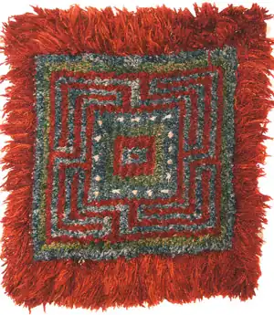 Tibetan carpets from the 19th century (perhaps earlier, though mostly carpets from the 19th century survive) are relatively restrained in terms of design and coloring, carpet makers at that time being restricted to a narrow range of natural dyes including madder (red), indigo (blue), Tibetan rhubarb (yellow) and Tibetan walnut (browns and greys), with a few other local plants producing yellow and greenish colors. Motifs consisted of two classes: the first type being simple geometric motifs such as the checkerboard and gau (amulet) design that probably formed part of an ancient Tibetan design repertoire, mingled with medallion designs and other motifs derived from Chinese decorative traditions.