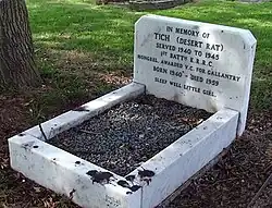 Tich (1940–1959) was a military dog during the Second World War. She was awarded the Dickin Medal in 1949 for her actions during the war as a battalion mascot to the King's Royal Rifle Corps. After the war she lived with her battalion handler at his home in the UK. When she died she was buried in the People's Dispensary for Sick Animals (PDSA)'s Ilford Animal Cemetery.