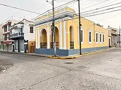 It was built at the beginning of the nineteenth century in neoclassical Creole style. it is a representative example of a ground floor masonry building for residential use. The property is part of a group of structures said to have been built to house Spanish officers. The houses are located on what became Ernesto Ramos Antonini Street. They were built during the last quarter of the nineteenth century. Their construction followed the rules established for the rebuilding of Villa de Mayagüez, following the Great Fire of 1841. The rules dictated plot size, height, construction materials, and perimeter walls (height and materials), and specified the use of a document outlining approved facade designs.