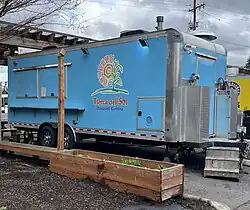 Tierra del Sol's chef is Amalia Sierra, a former social worker who opened her first cart at the Portland Mercado in 2015.[9] In 2020, a second location opened with a similar menu at Rocket Empire Machine, a food hall in the northeast Portland part of the Montavilla neighborhood.[5] Sierra has also shared plans to operate a food cart at Brooklyn Carreta.[13]
